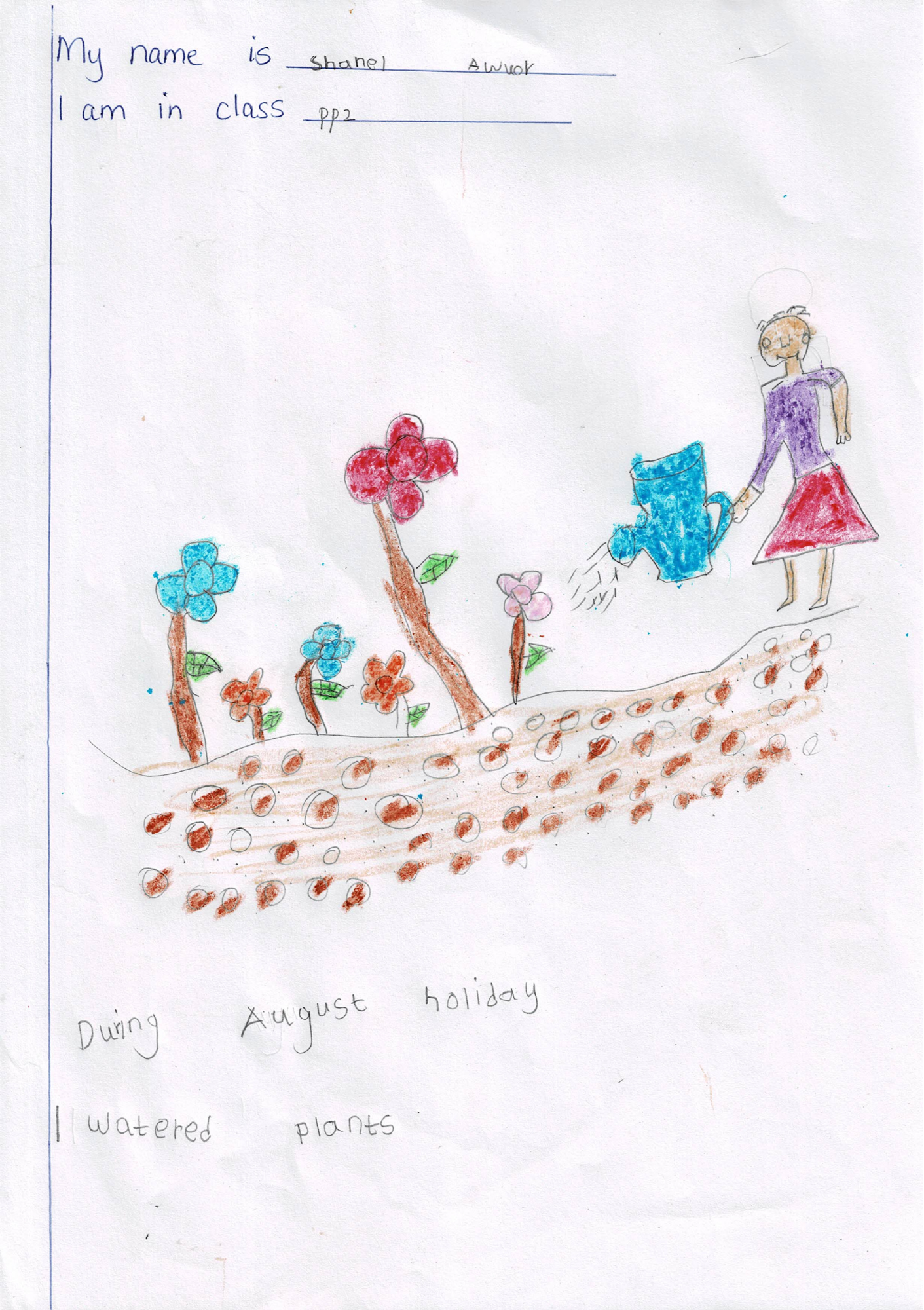 Shanal, our caring PP2 student, dedicated her holiday to nurturing nature. Her artwork shows her watering plants and spending peaceful time outdoors, discovering how important it is to care for living things.